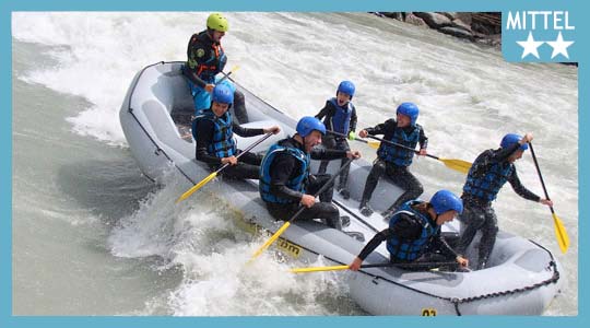 Die Sport Tour auf dem Gletscherfluss Isel ist perfekt für Anfänger und ein Familienerlebnis für jung und alt. Geniesse diese Fahrt in flotter Strömung und spaßigen Wellen. Wildwasser Schwimmen auf einem ruhigen Flussabschnitt erhöht den Spaß. Kinder ab 5, Dauer 2h (10km)